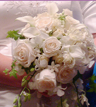 Swarovski jewelries add sparkling shine to this fabulous hand tie bouquet.