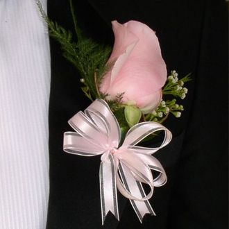 Single pink rose boutonniere with a bow is perfect to give for a special birthday, anniversary, prom or any occasion.